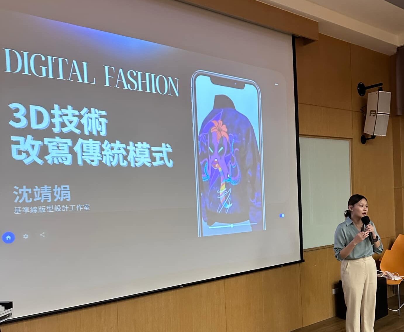 沈老師在現場分享了如何將傳統的服裝打版流程,透過數位化技術進行革新。過去的服裝設計需要手工打版、製作樣衣,不僅耗時,還可能浪費大量材料。但現在,透過電腦打版和3D軟體等工具,設計師可以在虛擬空間中快速完成版型調整和測試,大幅縮短開發時間,同時減少資源浪費。這樣的技術對於追求環保和效率的現代服裝產業來說,真的是一大福音!